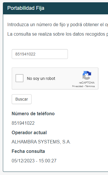 La CNMC dispone de un buscador que si ponemos el número de teléfono nos dirá que el número pertenece a Alhambra. ¿seguro que el operador es ese?