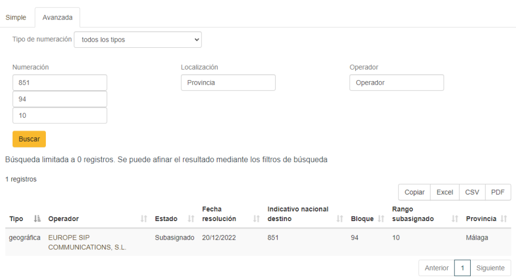 No obstante, la propia CNMC dispone de un buscador algo más avanzado donde podremos buscar a quién pertenece un número si queremos saber quién es el operador encargado de esa numeración.