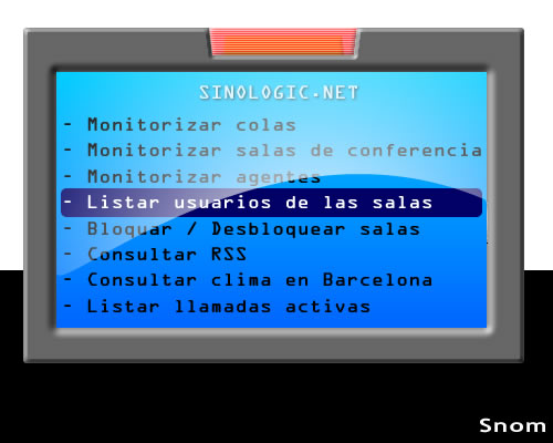 La gente de Snom acaba de publicar una aplicación que se instala en el terminal Snom de la gama 3XX y que permite conectarse al Asterisk y realizar estas acciones desde el propio teléfono: