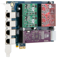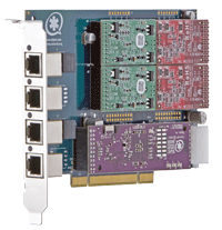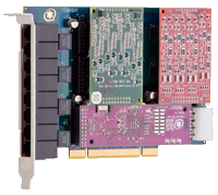 Para un Asterisk que soporte hasta 4 líneas analógicas, podemos utilizar una tarjeta llamada TDM410P. Esta tarjeta PCI funciona tanto en slots de 5V. como de 3,3V. por lo que cualquier PCI normal y corriente nos servirá (siempre y cuando tengamos en cuenta las limitaciones de las PCI para dispositivos de comunicaciones). Esta tarjeta trae unos slots donde colocar hasta 4 módulos analógicos (FXO para conectar líneas analógicas, o FXS para conectar teléfonos analógicos o faxes).