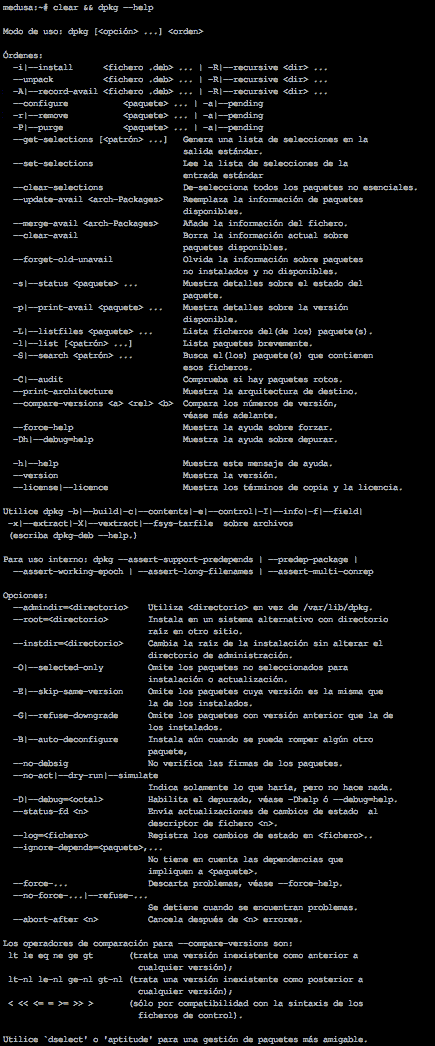 Con un simple vistazo a la herramienta dpkg podemos ver estos parámetros (he puesto la letra muy pequeña para que ocupe lo mínimo posible).