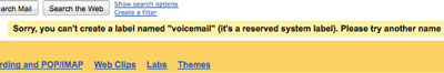 Al parece, un usuario se ha dado cuenta que no podía crear una etiqueta llamada ‘VoiceMail’ en su cuenta de GMail, por lo visto esta etiqueta está pensada para ser una «etiqueta del sistema» así que es evidente que pronto tendremos algo más de VoIP en las cuentas de Google.