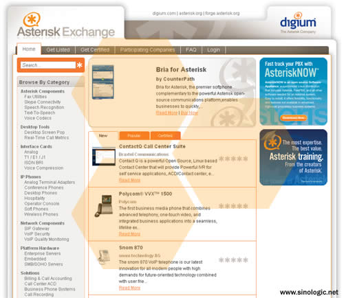 Como comentamos el pasado mes de Octubre, Digium hacía público un directorio público llamado AsteriskExchange donde fabricantes y desarrolladores podían darse de alta y ofrecer sus productos con objeto que los usuarios de Asterisk tuvieran un lugar a donde dirigirse en caso de que buscaran algún producto.