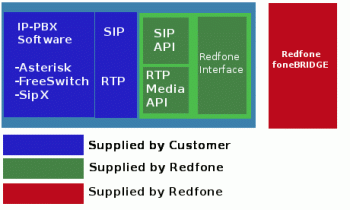 Aunque hemos hablado de conexión con la PSTN de un modo genérico, esta pila está certificada para funcionar junto con dispositivos de Redfone como los foneBridge2 pudiendo utilizar, no únicamente Asterisk, si no cualquier otro software compatible con SIP para trabajar con los foneBridges haciendola una solución aún más flexible y competitiva.