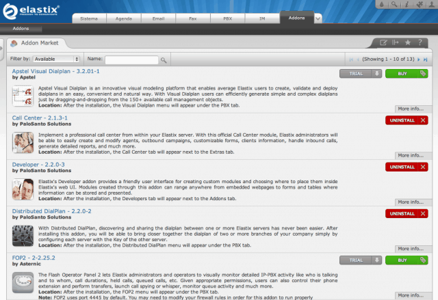 Hoy día, el Market de Elastix incluye una gran cantidad de Addons disponibles, algunos completamente gratuitos y otros, aunque comerciales, a precios realmente simbólicos.