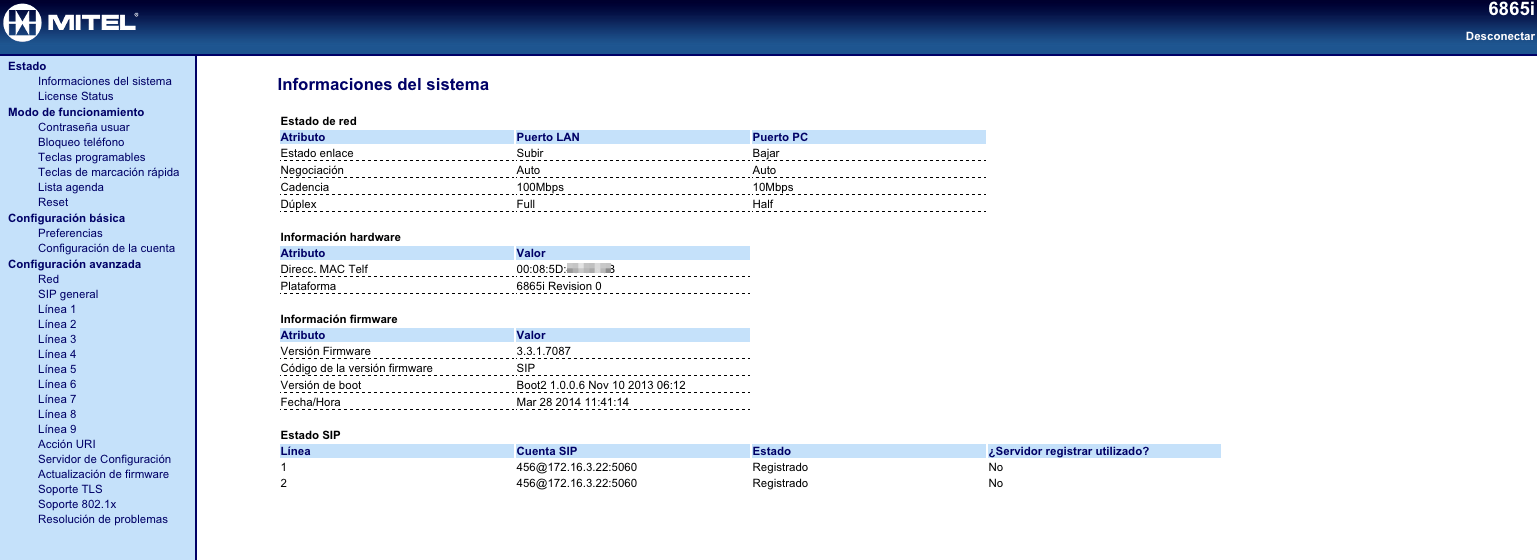 El teléfono Aastra 6865i soporta hasta 9 líneas SIP, tiene una pantalla monocromo retroiluminada de 3,4″ (128×48) además de disponer de dos puertos Gigabit. También dispone de teclas con Leds lo que permite disponer de monitorización de telefonos IP.