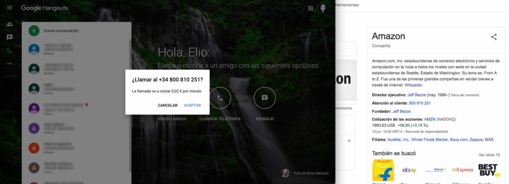 Google te ofrece hacer llamadas telefónicas desde su buscador