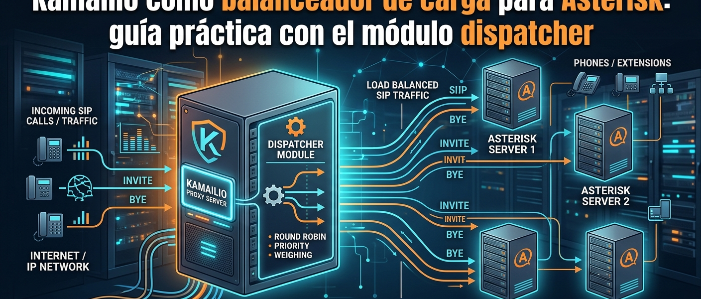 If you’ve been working with Asterisk in production for a while, sooner or later you’ve run into the same problem: a single Asterisk server doesn’t scale well. Calls pile up, CPU spikes with transcoding, and any restart to apply a configuration change means cutting the service. The classic solution is to run several Asterisk servers in parallel and put something in front to distribute the load. That “something” is Kamailio, and the tool that makes it possible is the dispatcher module.