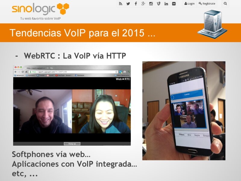 Tendencias VoIP para el 2015 ... - WebRTC : La VoIP vía HTTP Softphones vía web… Aplicaciones con VoIP integrada… etc, ...