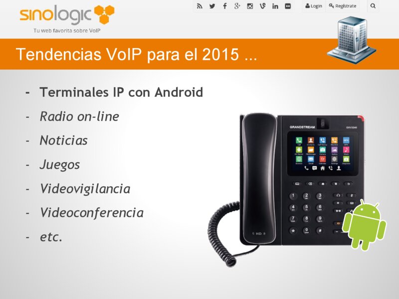 Tendencias VoIP para el 2015 ... - Terminales IP con Android - Radio on-line - Noticias - Juegos - Videovigilancia - Videoconferencia - etc.