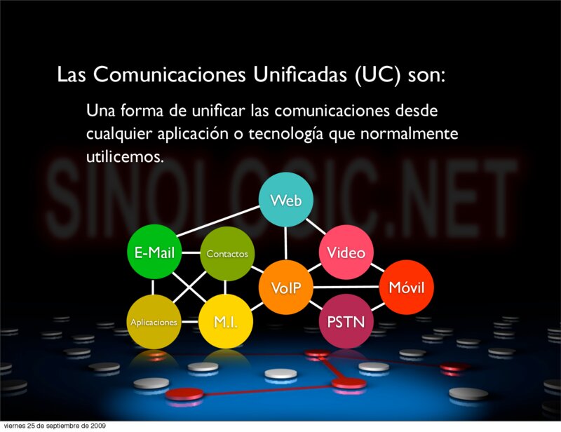 Comunicaciones Unificadas en grandes infraestructuras Elio Rojano (http://www.sinologic.net) viernes 25 de septiembre de 2009