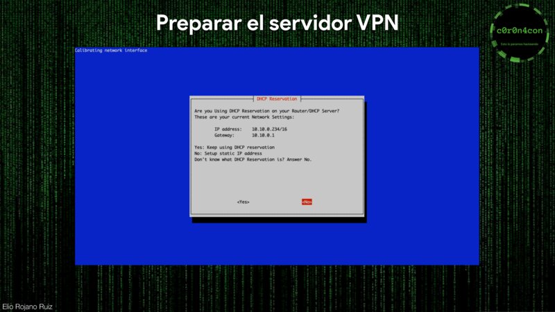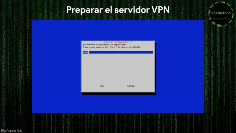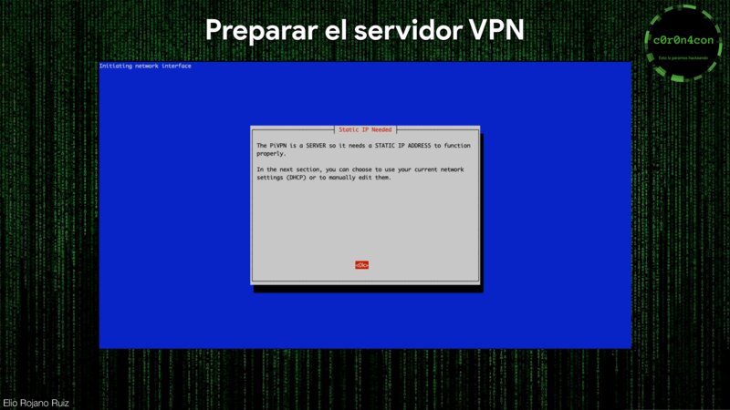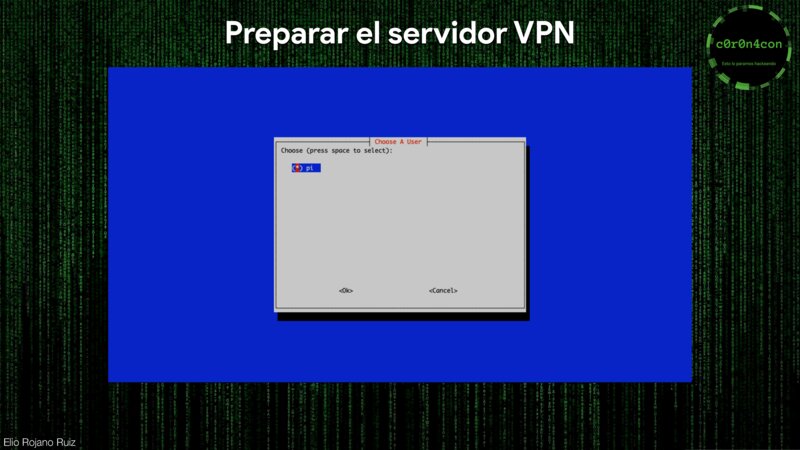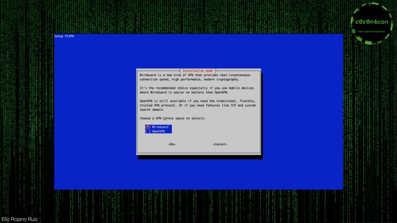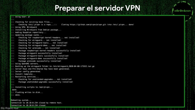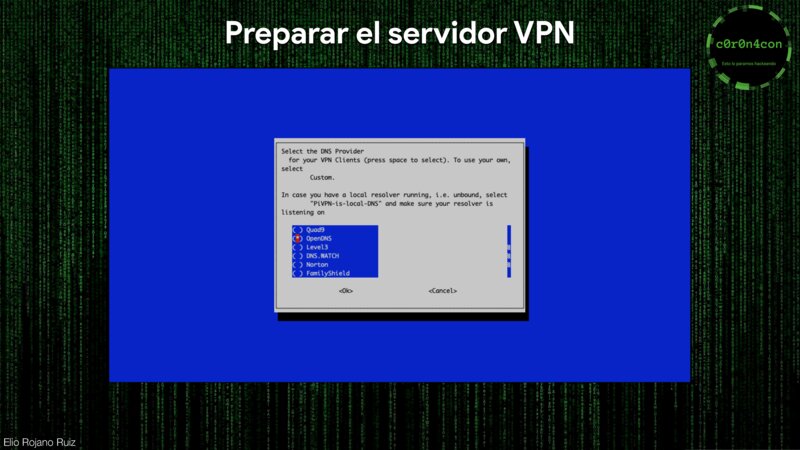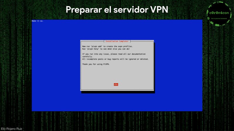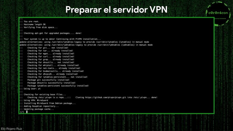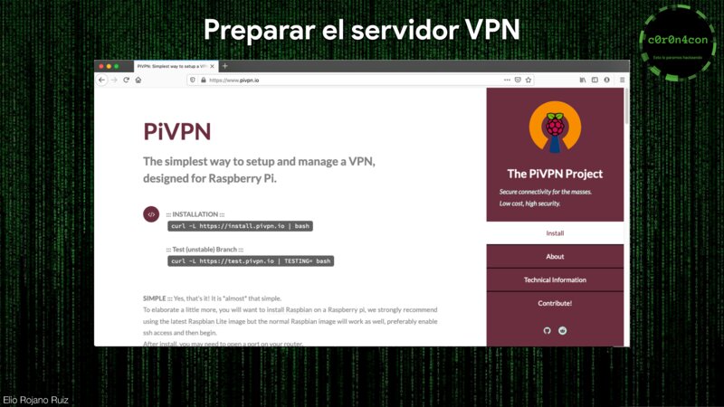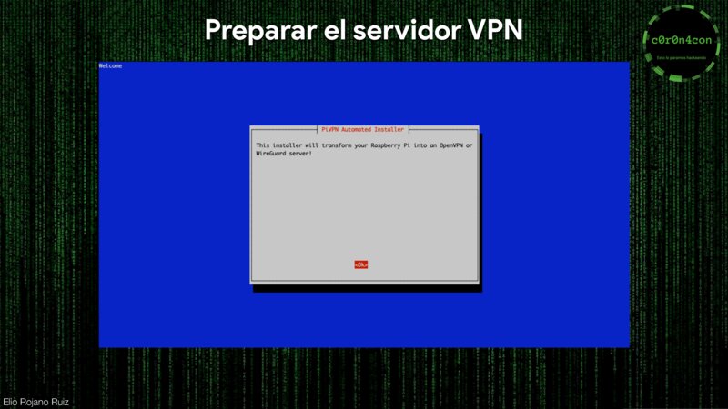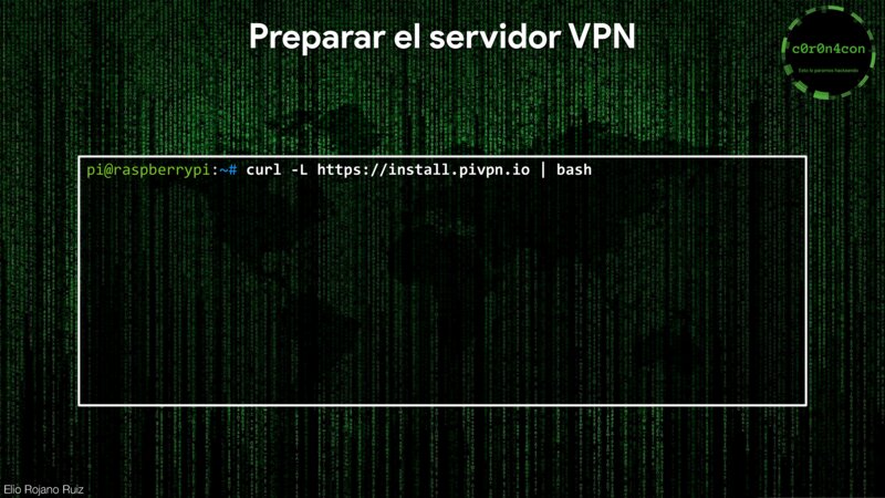 Preparar el servidor VPN pi@raspberrypi:~# curl -L https://install.pivpn.io | bash Elio Rojano Ruiz