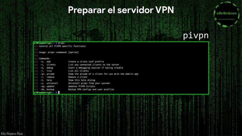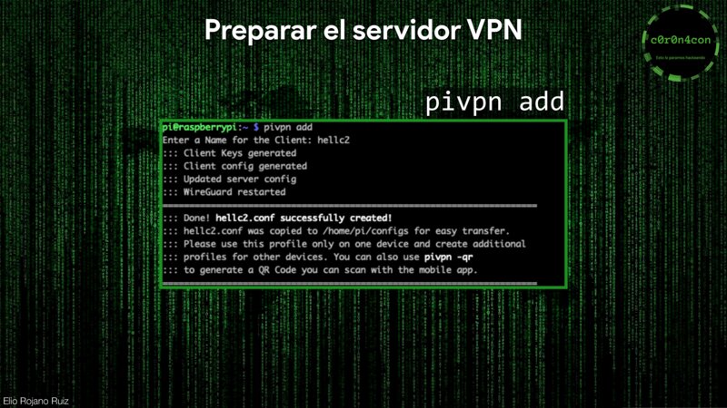 Preparar el servidor VPN pivpn add Elio Rojano Ruiz