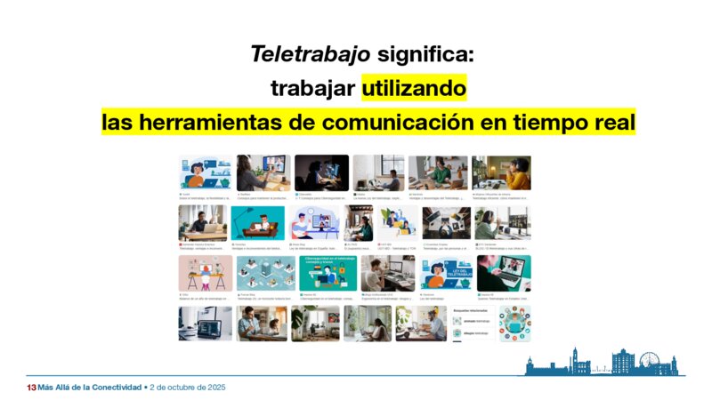 Teletrabajo significa: trabajar utilizando las herramientas de comunicación en tiempo real 13 Más Allá de la Conectividad • 2 de octubre de 2025