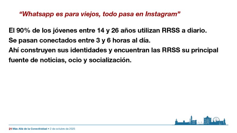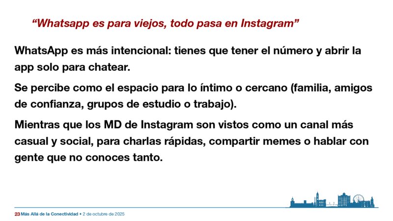 “Whatsapp es para viejos, todo pasa en Instagram” 24 Más Allá de la Conectividad • 2 de octubre de 2025