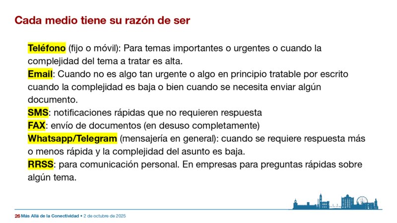 Cada medio tiene su razón de ser Teléfono (fijo o móvil): Para temas importantes o urgentes o cuando la complejidad del tema a tratar es alta.