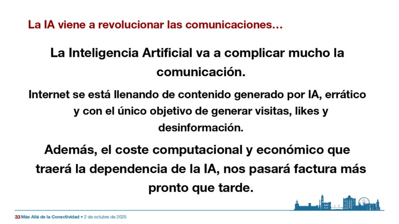Pero aún no hemos dado con algo que realmente sea revolucionario de cara a mejorar las comunicaciones utilizando la Inteligencia Artificial 32 Más Allá de la Conectividad • 2 de octubre de 2025