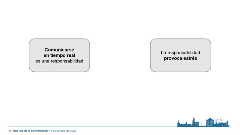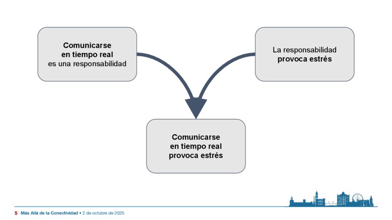 Comunicarse en tiempo real es una responsabilidad La responsabilidad provoca estrés Comunicarse en tiempo real provoca estrés 5 Más Allá de la Conectividad • 2 de octubre de 2025