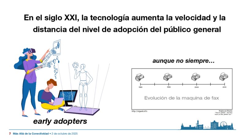 En el siglo XXI, la tecnología aumenta la velocidad y la distancia del nivel de adopción del público general aunque no siempre… early adopters 7 Más Allá de la Conectividad • 2 de octubre de 2025