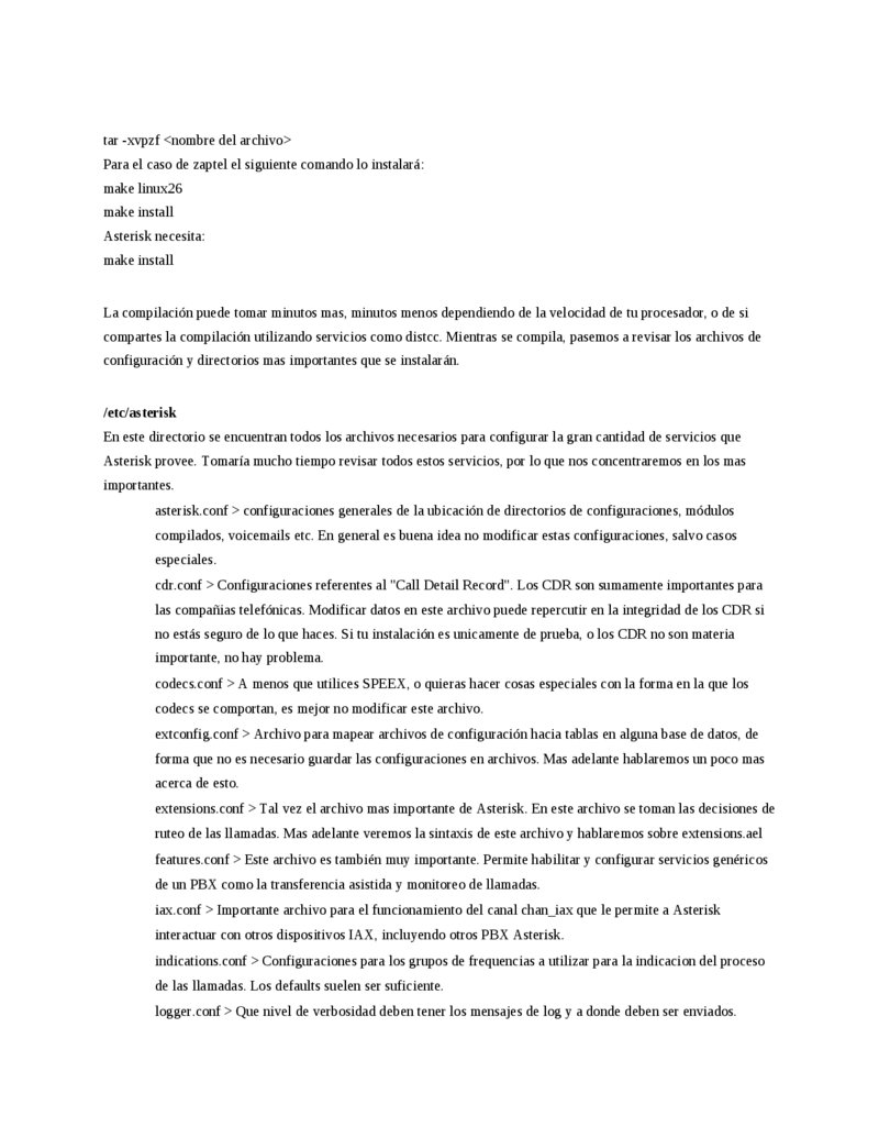 tar -xvpzf <nombre del archivo> Para el caso de zaptel el siguiente comando lo instalará:
