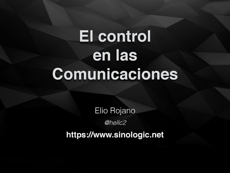 El control en las Comunicaciones Elio Rojano @hellc2 https://www.sinologic.net