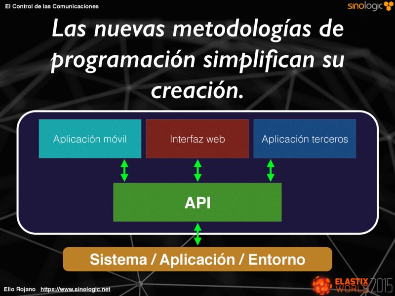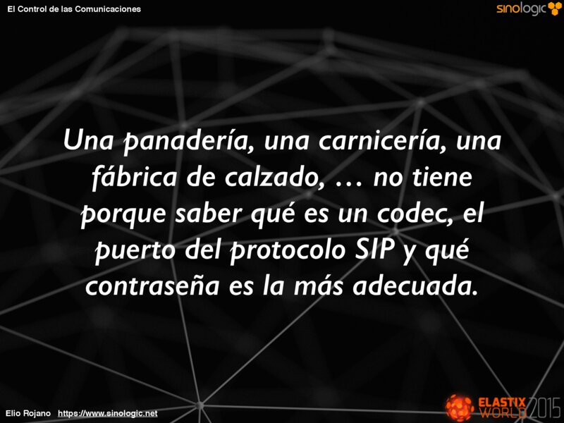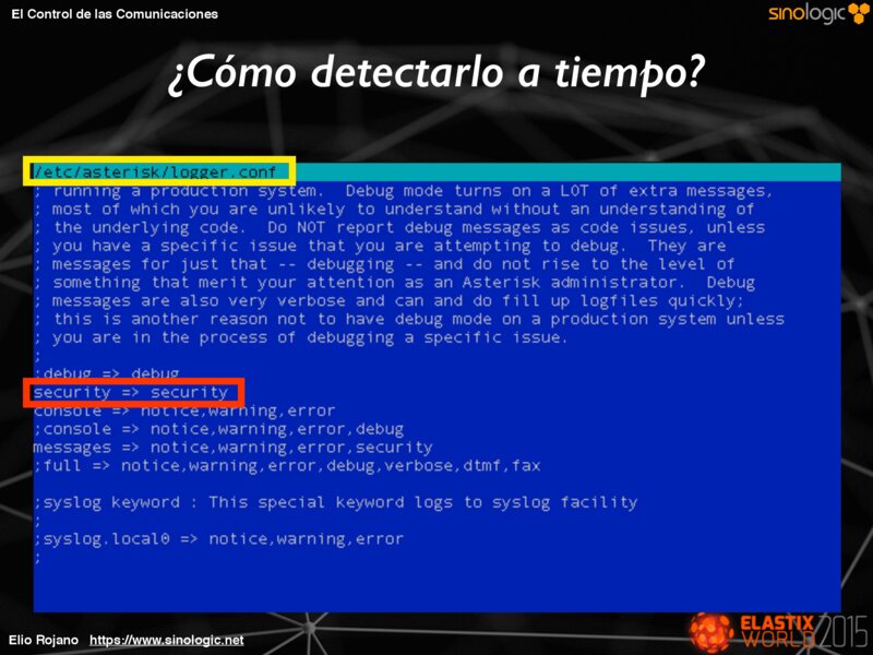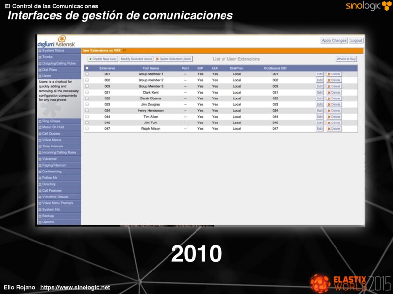 El Control de las Comunicaciones Un ejemplo: Elastix archivos .conf Base de datos Elio Rojano https://www.sinologic.net