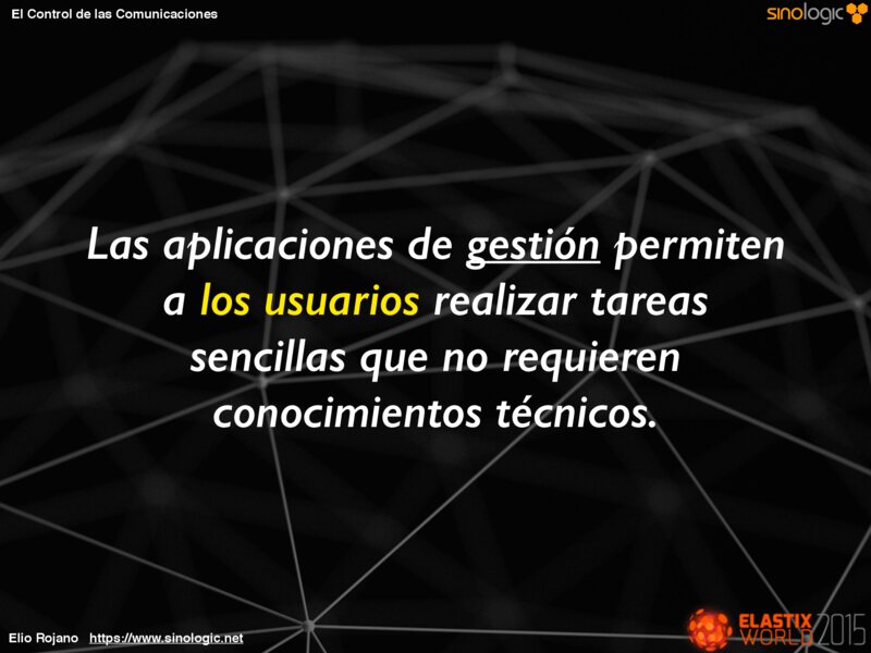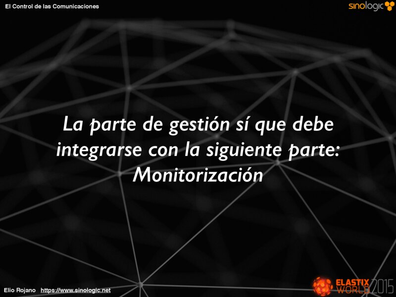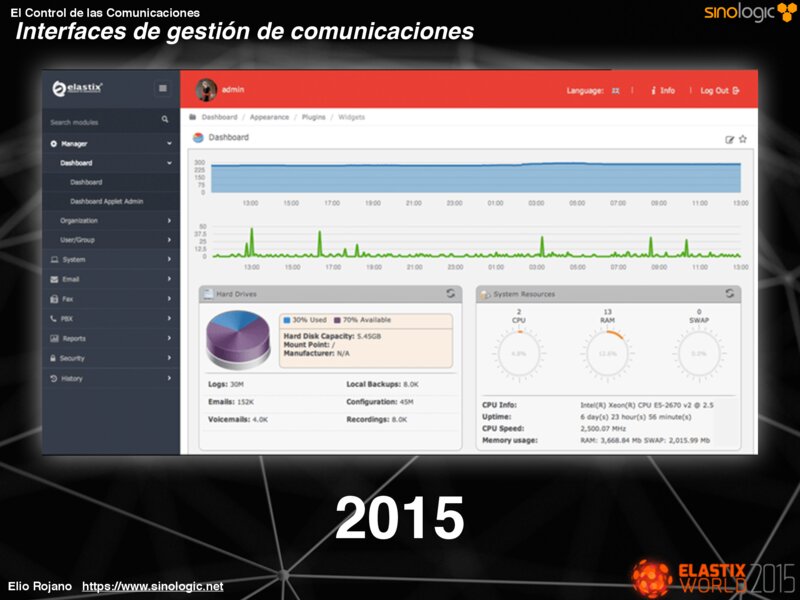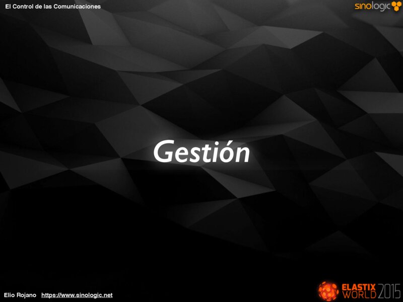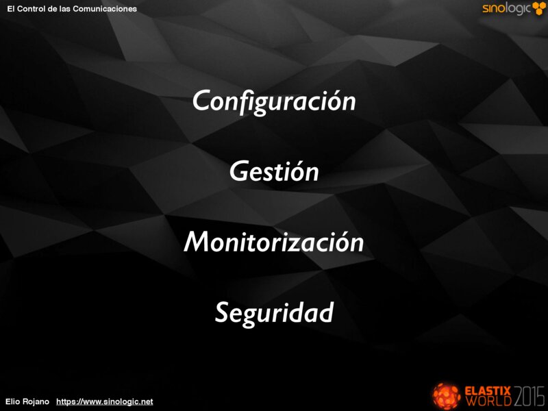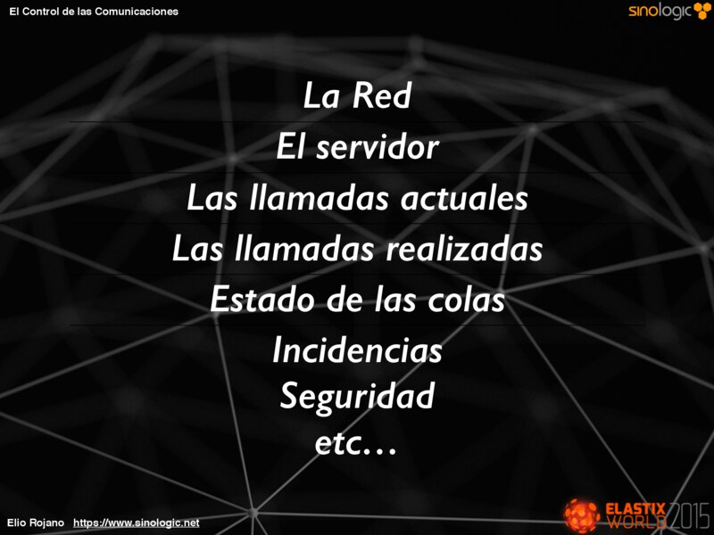 El Control de las Comunicaciones La Red El servidor Las llamadas actuales Las llamadas realizadas Estado de las colas Incidencias Seguridad etc… Elio Rojano https://www.sinologic.net