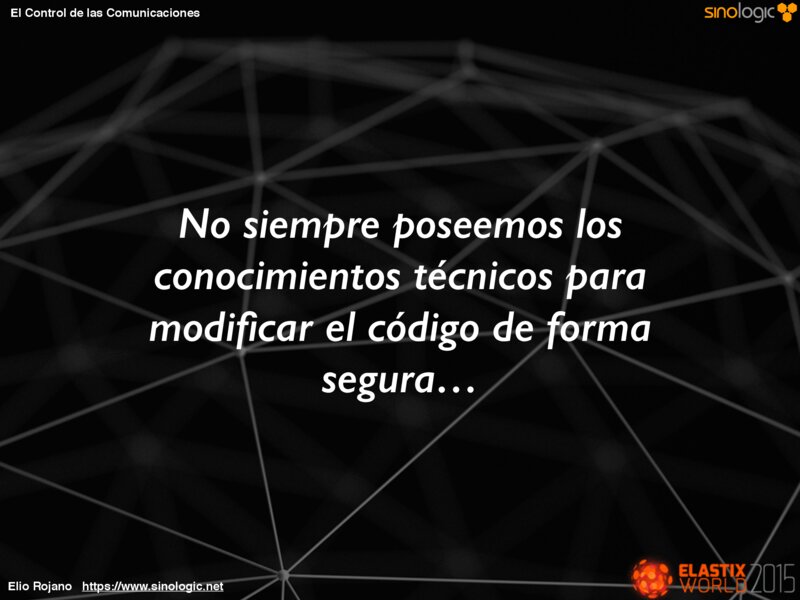 El Control de las Comunicaciones No siempre poseemos los conocimientos técnicos para modificar el código de forma segura… Elio Rojano https://www.sinologic.net