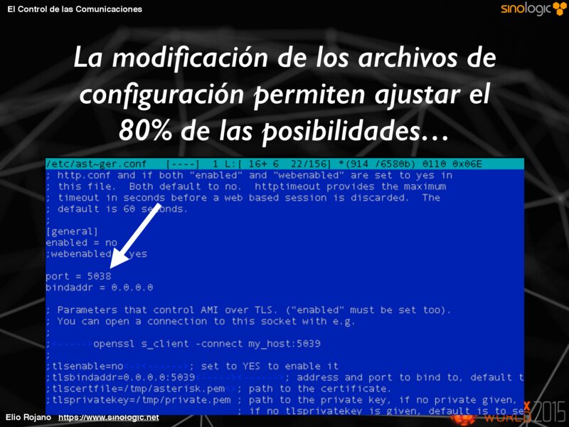 El Control de las Comunicaciones La modificación de los archivos de configuración permiten ajustar el 80% de las posibilidades… Elio Rojano https://www.sinologic.net
