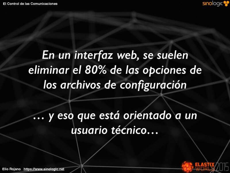 El Control de las Comunicaciones En un interfaz web, se suelen eliminar el 80% de las opciones de los archivos de configuración … y eso que está orientado a un usuario técnico… Elio Rojano https://www.sinologic.net