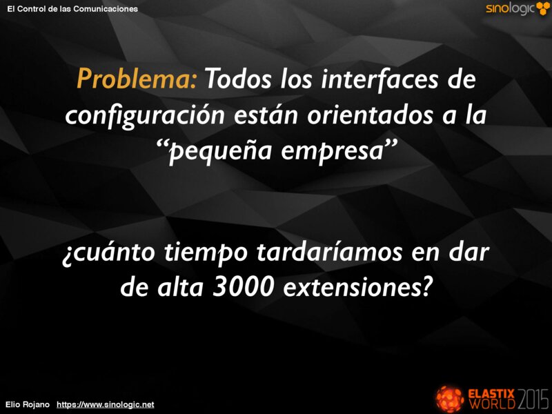 El Control de las Comunicaciones Problema: Todos los interfaces de configuración están orientados a la “pequeña empresa” ¿cuánto tiempo tardaríamos en dar de alta 3000 extensiones?