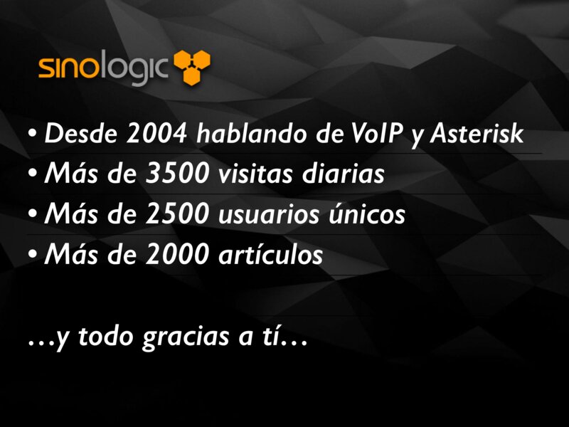• Desde 2004 hablando de VoIP y Asterisk • Más de 3500 visitas diarias • Más de 2500 usuarios únicos • Más de 2000 artículos …y todo gracias a tí…