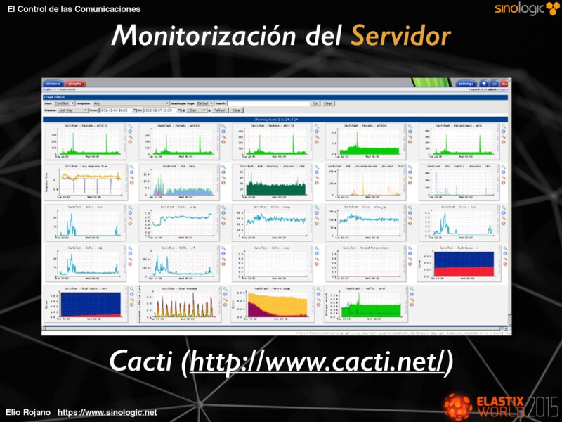 El Control de las Comunicaciones Monitorización del Servidor Cacti (http://www.cacti.net/) Elio Rojano https://www.sinologic.net