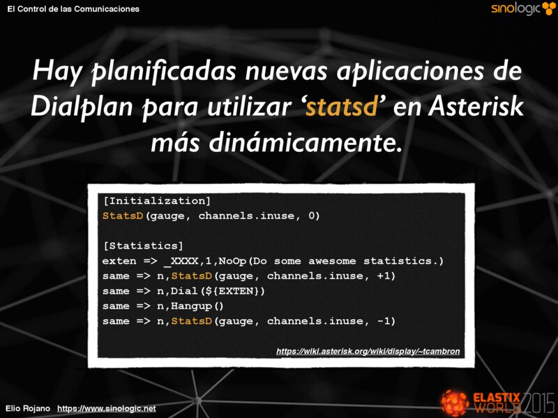 El Control de las Comunicaciones Hay planificadas nuevas aplicaciones de Dialplan para utilizar ‘statsd’ en Asterisk más dinámicamente.
