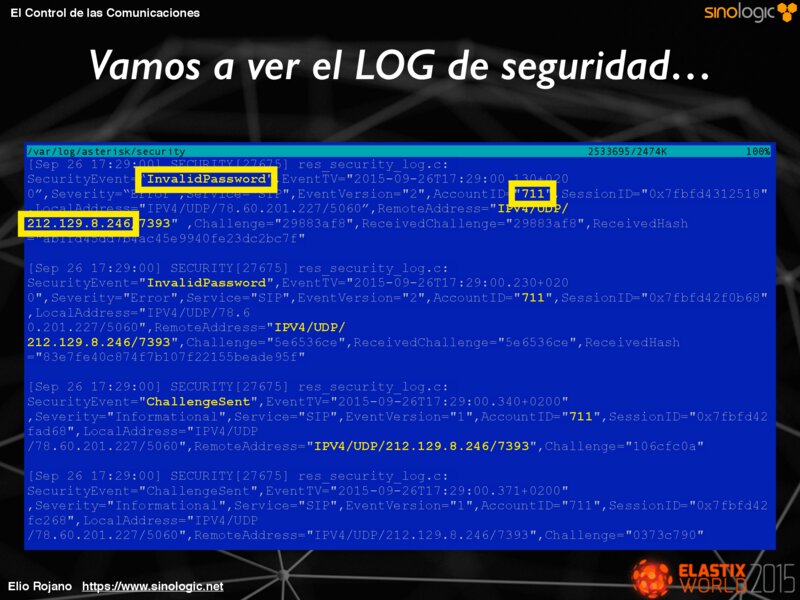 El Control de las Comunicaciones Vamos a ver el LOG de seguridad… /var/log/asterisk/security