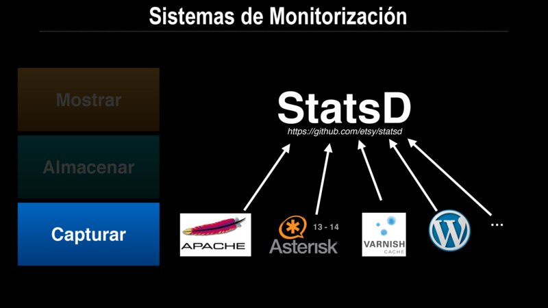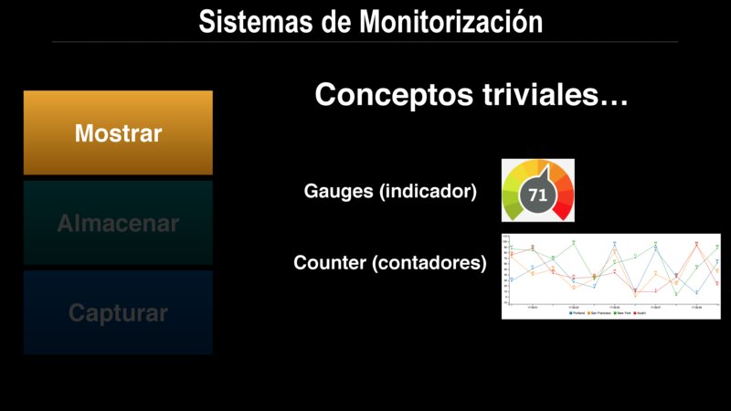 Sistemas de Monitorización Conceptos triviales… Mostrar Gauges (indicador) Almacenar Counter (contadores) Capturar