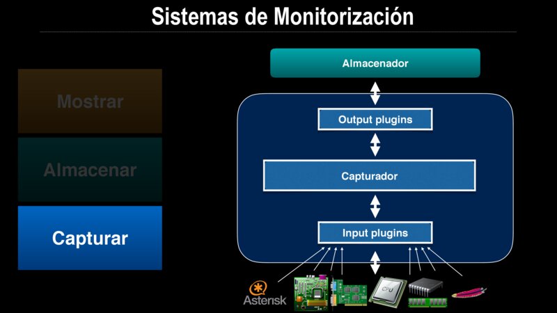 Sistemas de Monitorización Almacenador Mostrar Output plugins Almacenar Capturar Capturador Input plugins