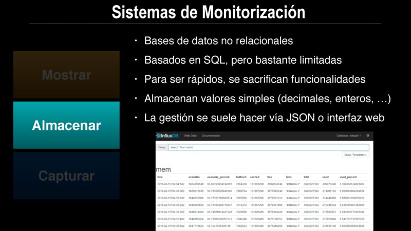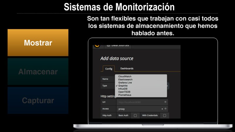 Sistemas de Monitorización Son tan flexibles que trabajan con casi todos los sistemas de almacenamiento que hemos hablado antes.