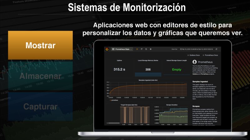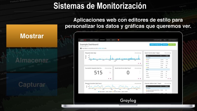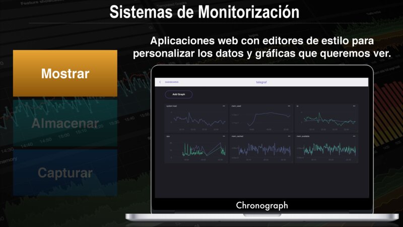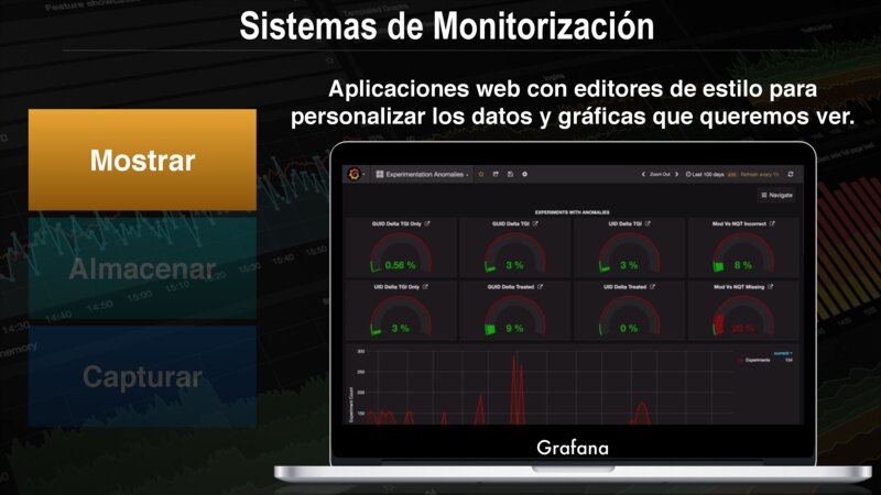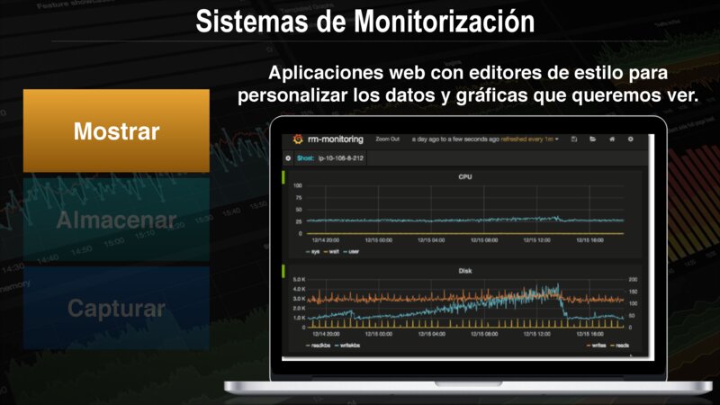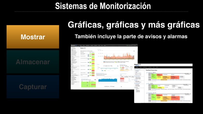 Sistemas de Monitorización Gráficas, gráficas y más gráficas Mostrar Almacenar Capturar También incluye la parte de avisos y alarmas