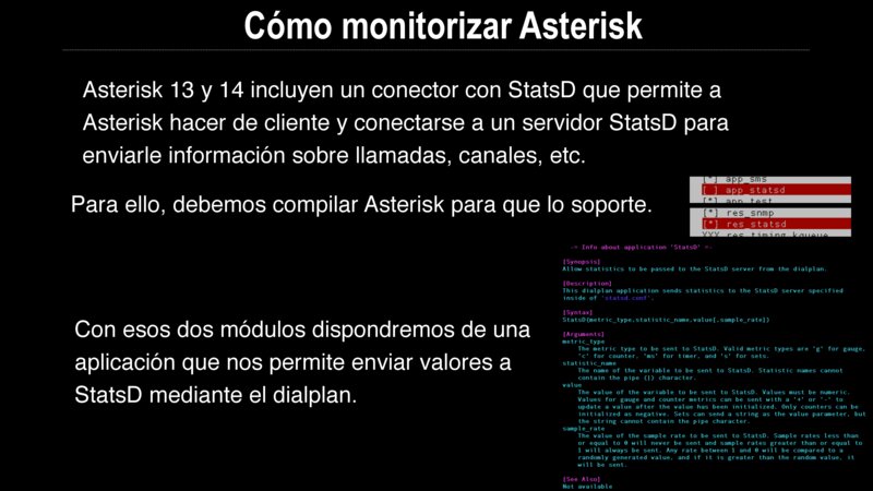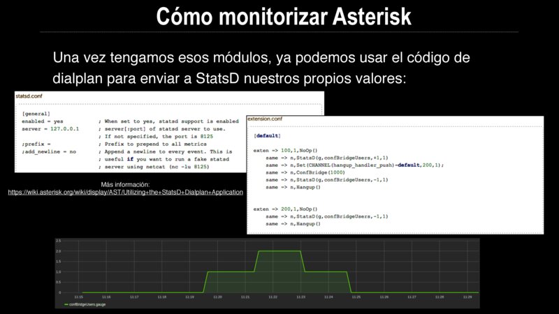 Cómo monitorizar Asterisk Una vez tengamos esos módulos, ya podemos usar el código de dialplan para enviar a StatsD nuestros propios valores: