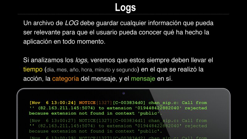 Logs Un archivo de LOG debe guardar cualquier información que pueda ser relevante para que el usuario pueda conocer qué ha hecho la aplicación en todo momento.
