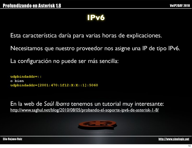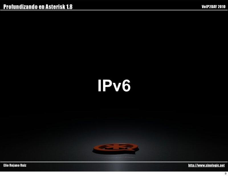 Profundizando en Asterisk 1.8 VoIP2DAY 2010 IPv6 Elio Rojano Ruiz http://www.sinologic.net 9