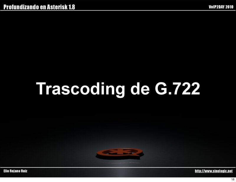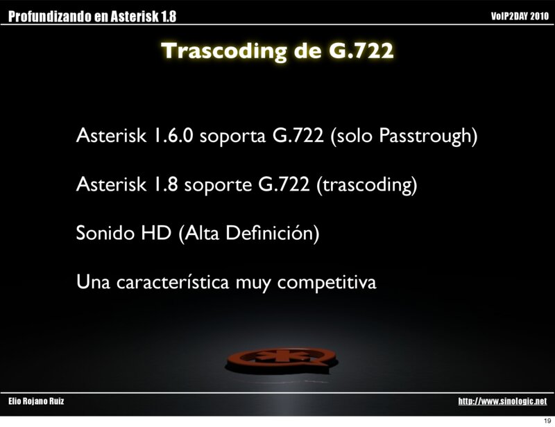 Profundizando en Asterisk 1.8 VoIP2DAY 2010 Trascoding de G.722 Elio Rojano Ruiz http://www.sinologic.net 18