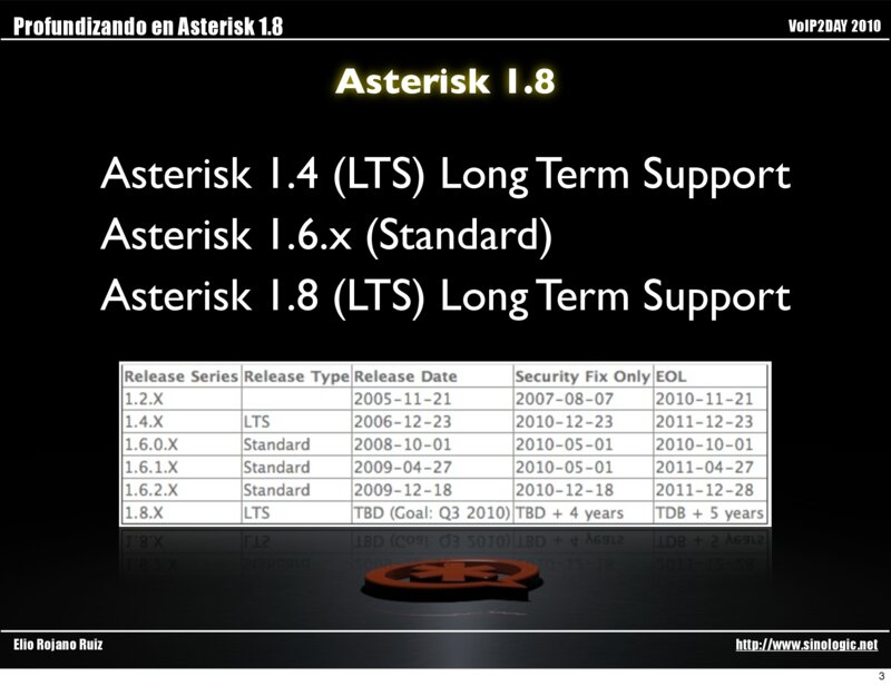 1 Profundizando en Asterisk 1.8 VoIP2DAY 2010 Asterisk 1.8 Elio Rojano Ruiz http://www.sinologic.net 2 Profundizando en Asterisk 1.8 VoIP2DAY 2010 Asterisk 1.8 Asterisk 1.4 (LTS) Long Term Support Asterisk 1.6.x…