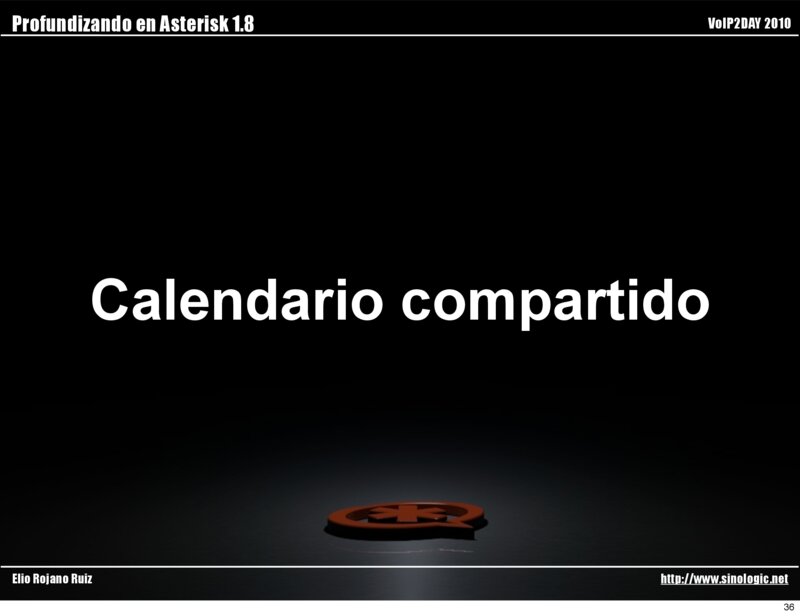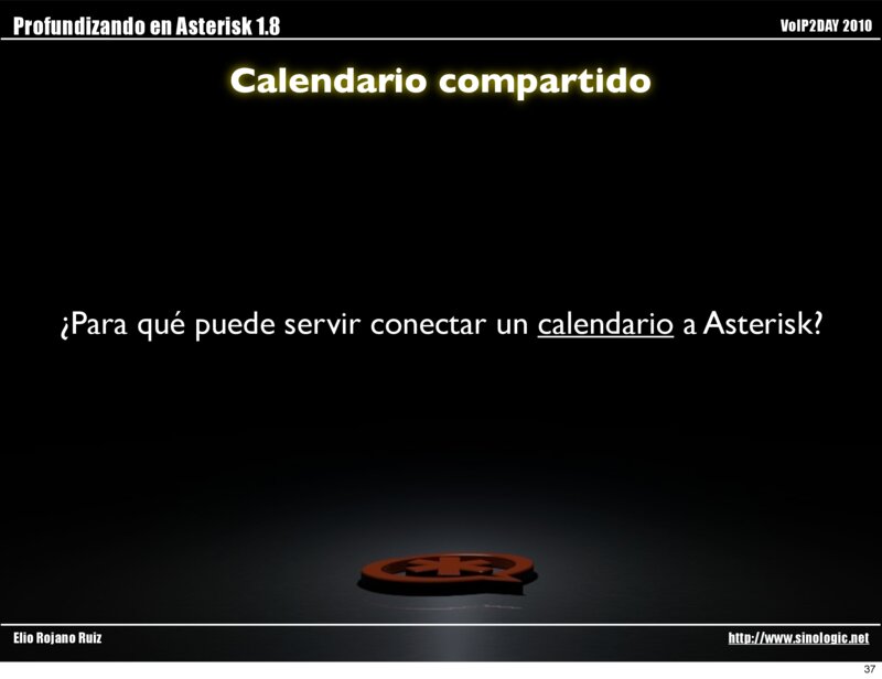 Profundizando en Asterisk 1.8 VoIP2DAY 2010 Calendario compartido Elio Rojano Ruiz http://www.sinologic.net 36