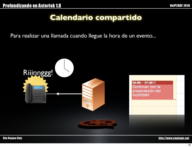 Profundizando en Asterisk 1.8 VoIP2DAY 2010 Calendario compartido Para realizar una llamada cuando llegue la hora de un evento...