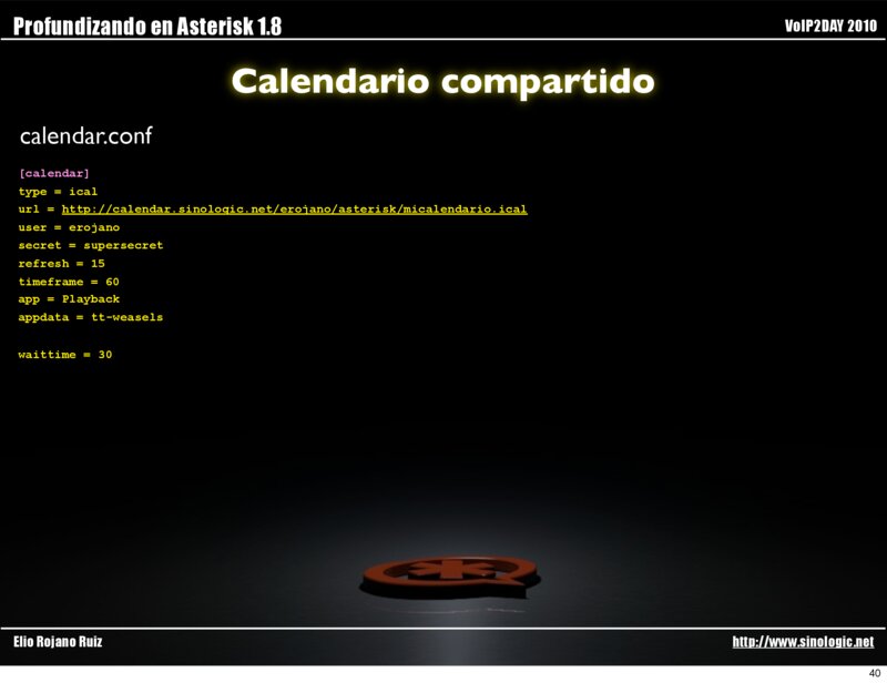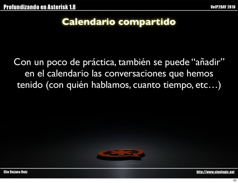 Profundizando en Asterisk 1.8 VoIP2DAY 2010 Calendario compartido ¿Para qué puede servir conectar un calendario a Asterisk?