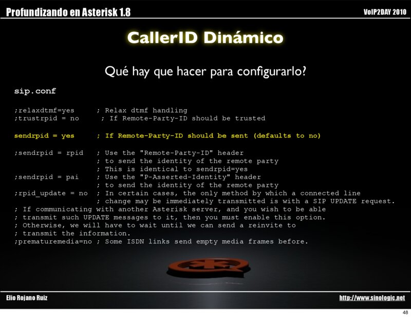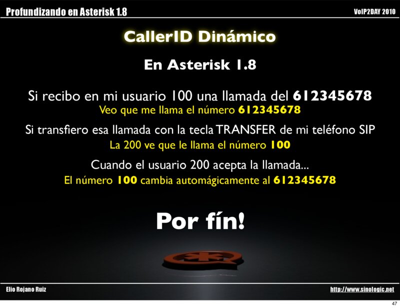 Profundizando en Asterisk 1.8 VoIP2DAY 2010 CallerID Dinámico Qué hay que hacer para configurarlo?