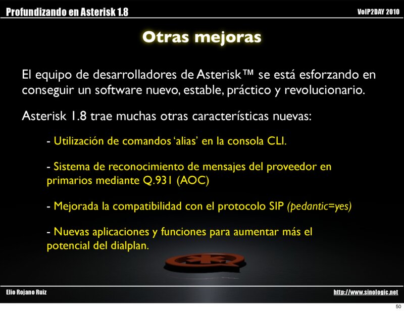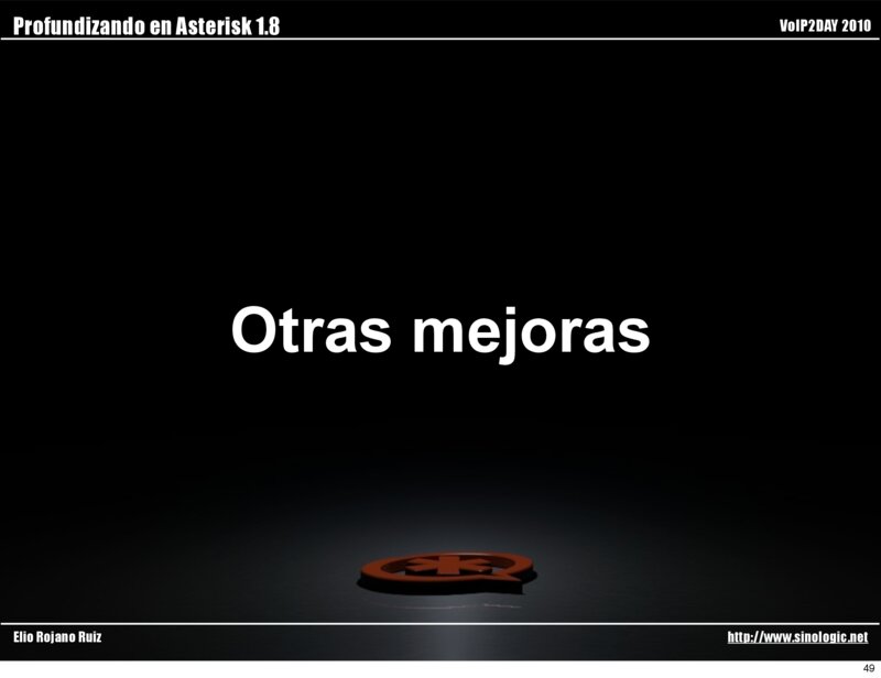Profundizando en Asterisk 1.8 VoIP2DAY 2010 Otras mejoras Elio Rojano Ruiz http://www.sinologic.net 49