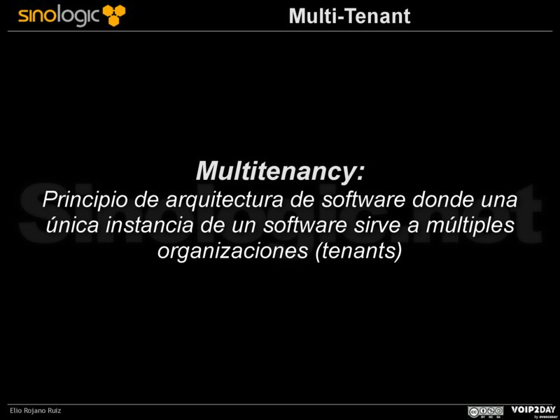 Multi-Tenant Sinologic.net Multitenancy: Principio de arquitectura de software donde una única instancia de un software sirve a múltiples organizaciones (tenants) Elio Rojano Ruiz